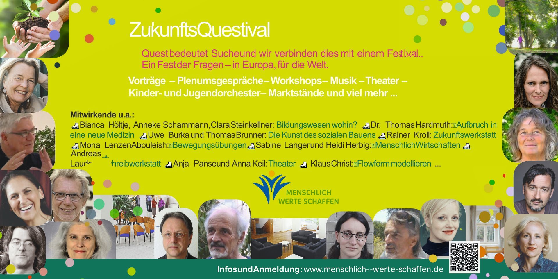 Quest bedeutet Suche. Auf dem Zukunftsquestival sollen viele Fragen an die Zukunft aus der Perspektive von Kindern, Jugendlichen, jungen Erwachsenen, Eltern, älteren Menschen und Gemeinschaften gestellt werden.